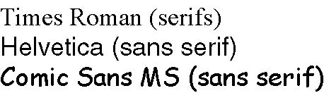 The illustration shows fonts with and without serifs. Serifs improve ease of reading in printed text, but with bit-mapped graphics (graphics made up of little dots, such as on your monitor) serifs do not come out as well and make reading more difficult.