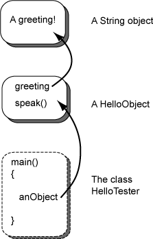 Here is a picture showing the objects in the program just before it stops running. Of course, when it stops running all the objects become inactive and are reclaimed by the garbage collector.