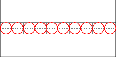 Here is a picture of the situation. There are 10 squares lined up along the horizontal center. Each square contains a red circle.