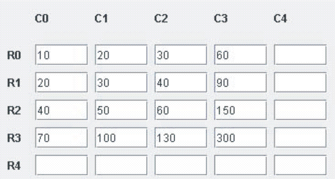 A spreadsheet is a rectangular array of cells. Each cell is either empty or contains either a value (an integer number) or a formula.