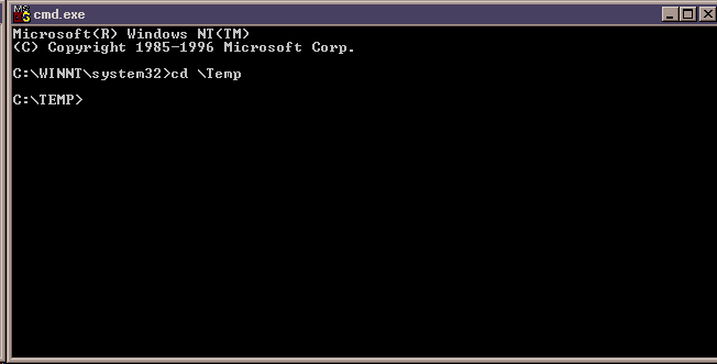 You will probably get a prompt that starts out in some other subdirectory. It doesn't matter where you start out because you can always move to where you want to be using the CD command. For now, let us create a Java program in the C:\Temp directory. To get to this directory type the command: