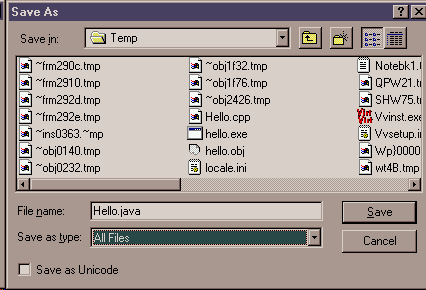 Your system is likely to be slightly different. Experiment with different choices until you are able to create a text file that contains the sample Java program.
