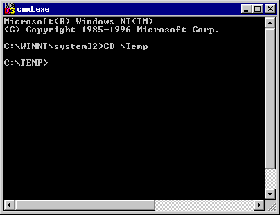 (I've reduced the size of the window to save space.) If you have some other subdirectory that you wish to use, you can "CD" to it instead of to "\Temp".