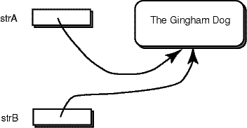 String strB; // another copy of the reference to the object