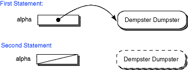 String alpha = "Dempster Dumpster"; alpha = null; . . .