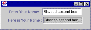 Here text is a variable that refers to a JTextField. The setEditable() method has one parameter that evaluates to either true or false. If the parameter is false, then the field can not be altered by the user (the setText() method still works, however.) Here is an excerpt from the program: