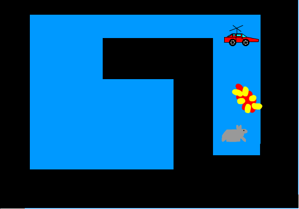 You have recently bought a new car that can fly around and shoot stuff. Follow the storyline to win. This game shows everything that I have learned, and ties it all together in a gaming environment. The main purpose of this game is length, which is why it is somewhat long. It has 26 scenes, which is a lot. To win, you must complete all of the levels, which may be slightly difficult if you do not know what you are doing...Good Luck!